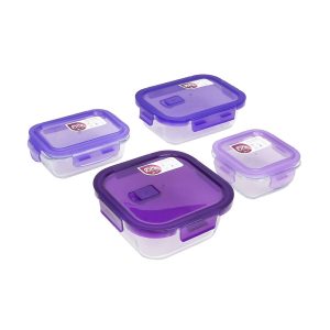 Ecolock Borosilicate Glass Food Storage Container Square & Rectangle Set 4pcs - Indigo Purple