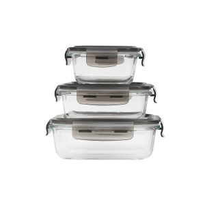 Ecolock Borosilicate Glass Food Storage Container Square & Rectangle Set 3pcs - Larva Grey