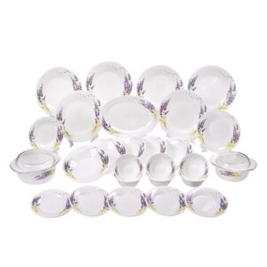 Dinexe Opal Glass Dinnerware Set 24pcs & Teapot Set 13pcs Combo - Lavender